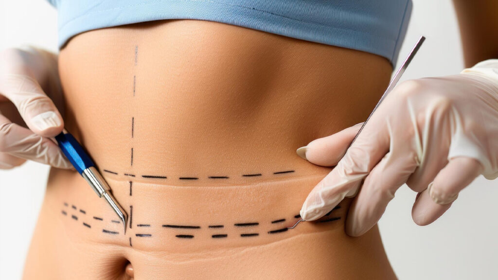 إزالة الجلد الزائد وشد العضلات لنحت منطقة البطن والخصر.